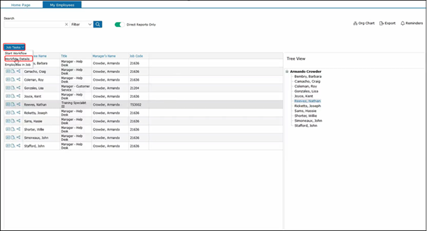 To view employee details for another employee, select a different employee with a different job description and then Employees in Job.