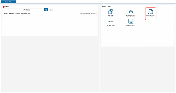 The View My Job icon is what you would click on to view your job description in a readable or printable format.