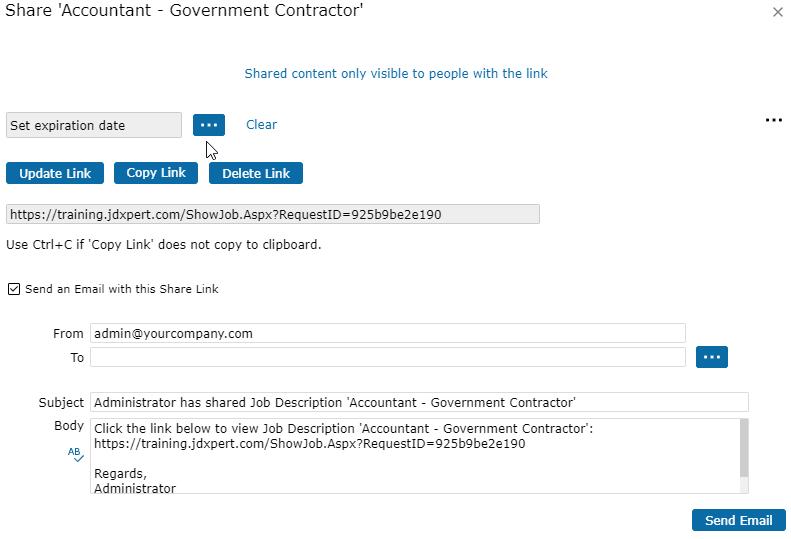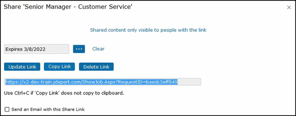 When opting to share the job description, you can set an Expiration Date if desired.