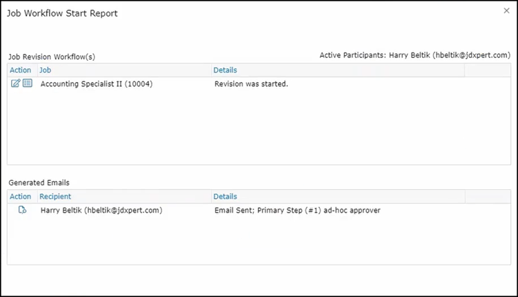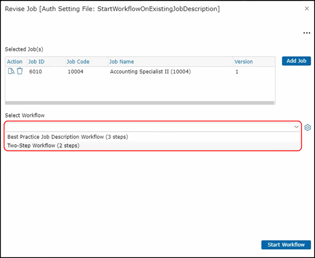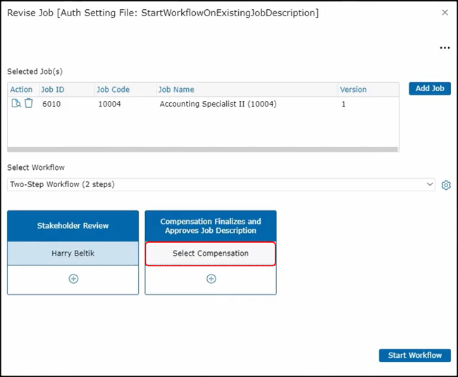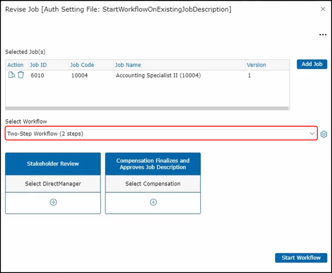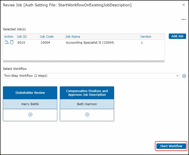 Once these steps are completed, you can start the workflow for this job description by clicking on Start Workflow.