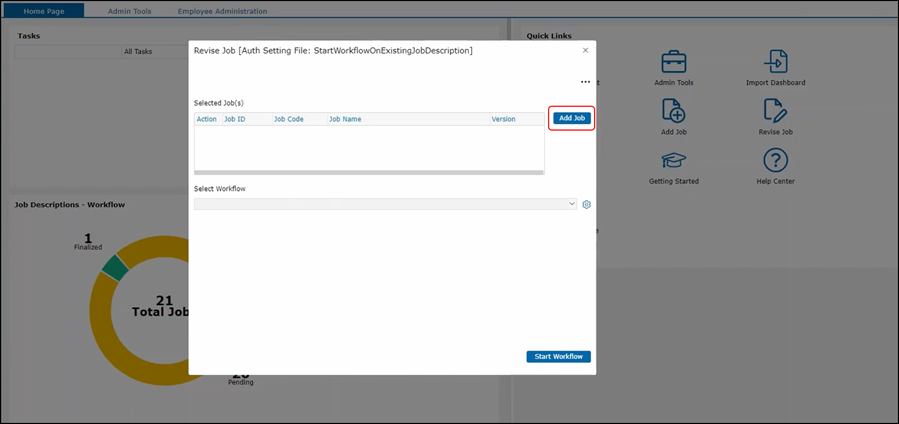 This will bring you into the workflow screen. Click on the Add Job link to add a job or jobs you wish to revise.