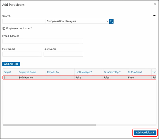 Since we have a compensation person already loaded in the system, you can select them directly by clicking on their row.