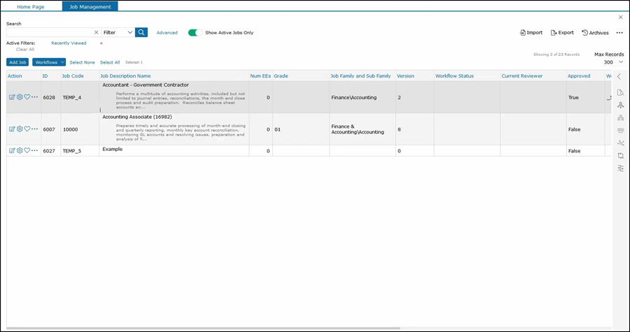 Once Benny makes his edits and approves the job, the job description is moved to the finalization process with Compensation.