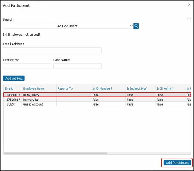 In this example, we will use Harry as our manager. Once we’ve made our selection, click Add Participant.
