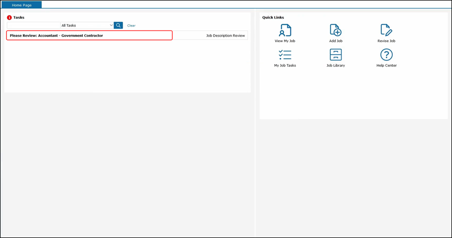 When Benny logs on to the system, he will see that he has a task assigned to him to review the Government Contractor job description..