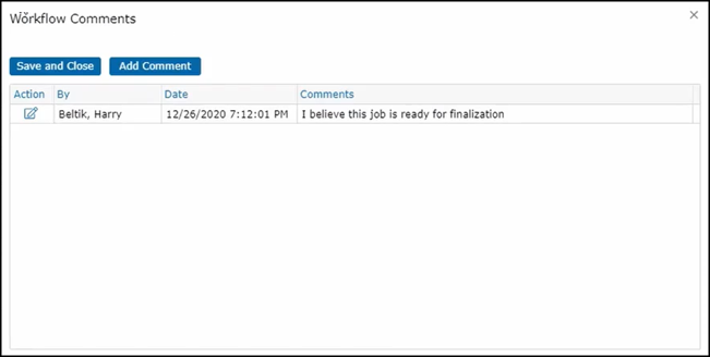 By clicking on a Comment bubble, you can add a comment as part of the workflow.