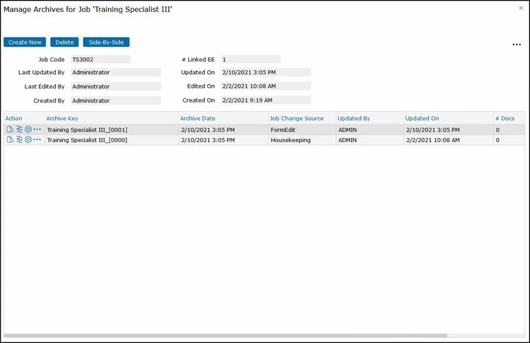 Archived Jobs will show you version history of your job descriptions. This is where these versions are stored and can be compared with other versions.